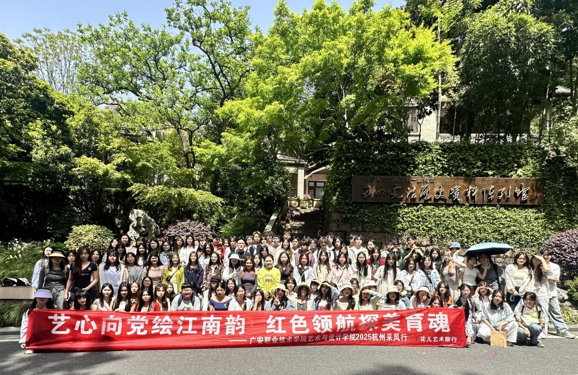 4月12日-19日,艺术与设计学院组织广告艺术设计群四个专业115名学生,以“艺心向党绘江南韵,红色领航探美育魂”为主题赴杭州采风。师生走访良渚博物馆、中国动漫博物馆、国家版本馆、五四宪法历史资料陈列馆等文化地标,在历史文脉与艺术实践中探寻江南文化底蕴,感悟红色领航下的美育初心。
