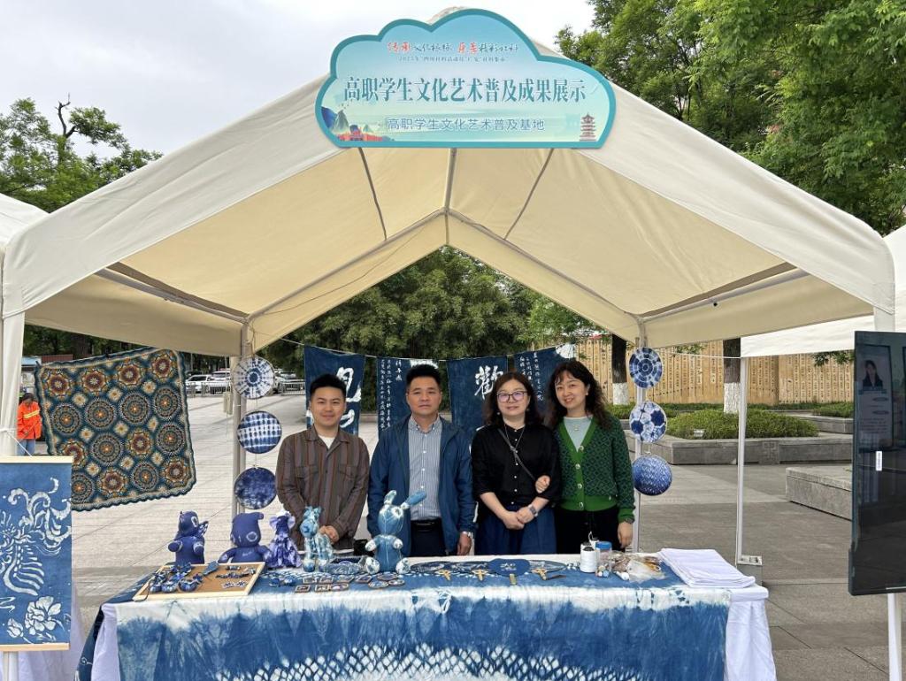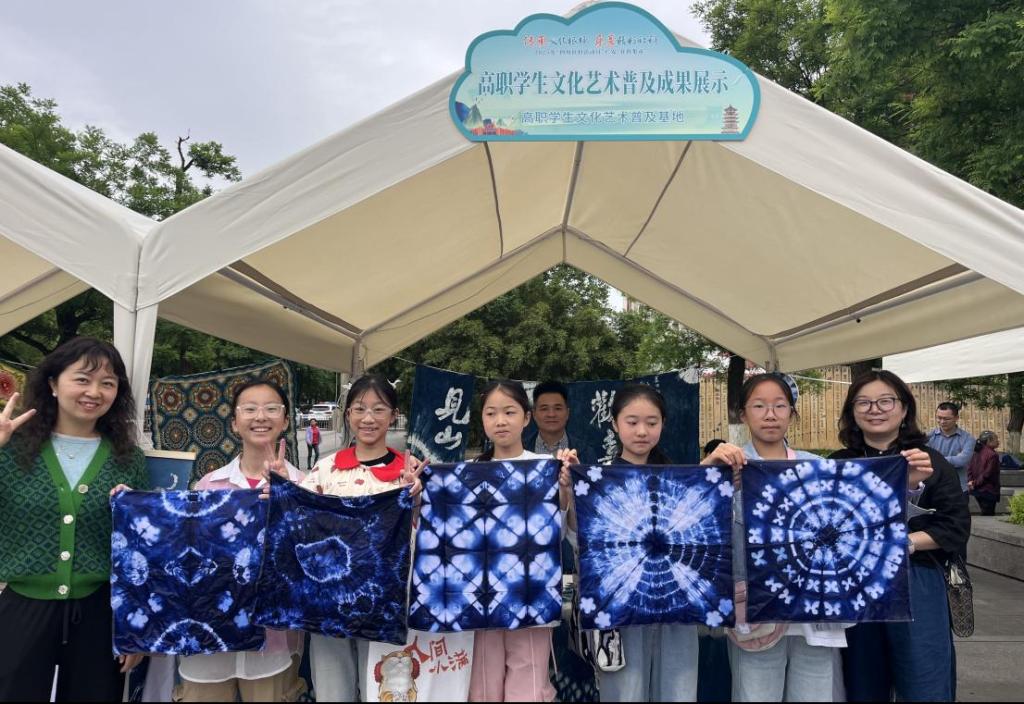 本次高职学生文化艺术普及基地主要负责集市展陈,通过宣传展示、咨询服务等丰富多彩、形式多样的社科普及活动,推动社科知识走向基层、走进群众。展出的60余件广安地域文创设计产品吸引了大量观众驻足欣赏与购买,这是在学院专业人才培养理念下从作品、产品到商品递进的教学成果展示。同时,为发挥地方文化艺术普及影响力,在现场开设了蜡染、扎染等互动体验,透过现场授课的方式让社科知识深入群众,获得了现场观众的广泛好评,积极推动学院专业发展服务社会的效益。