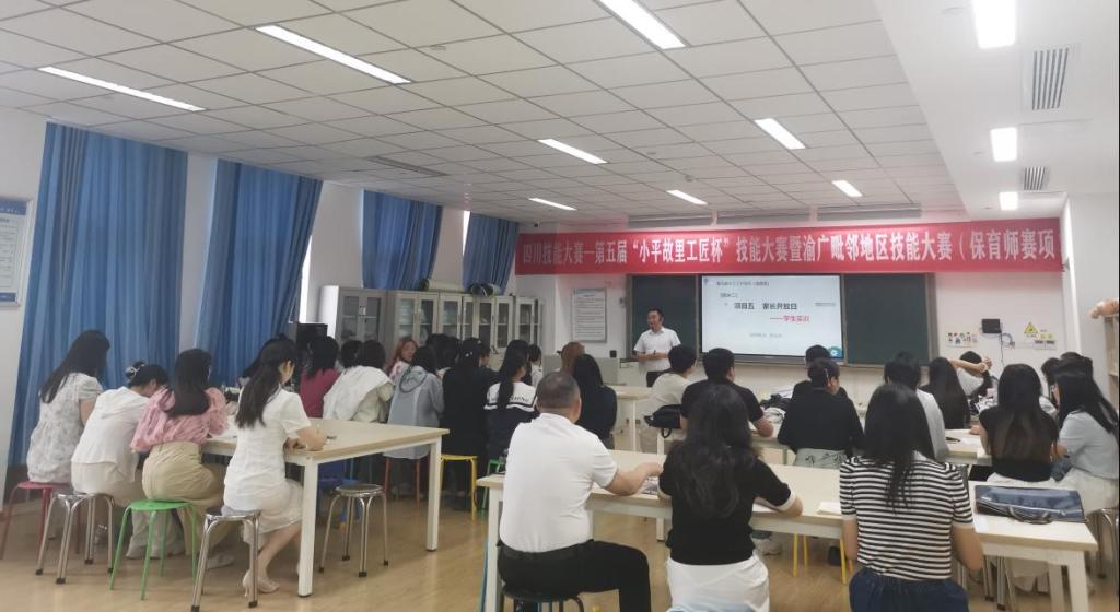 5月13日上午,师范学院“金课堂”打造系列活动在岳秀楼如期举行。本次示范课由学院党总支书记、早期教育专业骨干教师彭松林副教授主讲,授课课程为《学前儿童家庭教育指导》,重点探讨“家长开放日”的组织与实施策略。活动邀请到四川西部教育研究院副院长彭方志教授现场观摩指导,学院院长杨英,学前教育、早期教育专业骨干教师进行观摩。