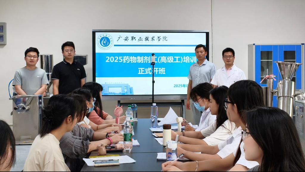 5月16日上午,由广安市广安区人力资源和社会保障局主办,广安技师学院、学校医学院联合承办的药物制剂工(高级工)职业技能培训开班仪式在医学院药学专业实训中心隆重举行。广安技师学院及医学院相关领导出席活动,并为培训开幕。