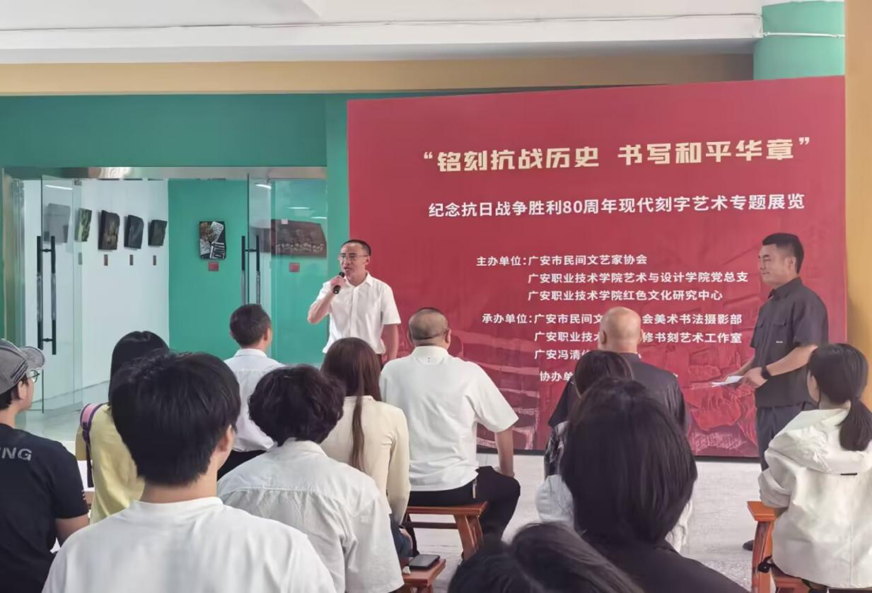 6月25日上午,学校艺术与设计学院党总支、红色文化研究中心联合广安市民间文艺家协会,共同主办的“铭刻抗战历史·书写和平华章”书刻艺术作品专题展,在kaiyun官网致用楼一楼文创展厅隆重开展。本次展览旨在纪念中国人民抗日战争胜利80周年,通过独特的书刻艺术形式传承红色基因,弘扬抗战精神。