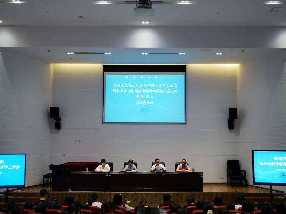 为统一思想、凝聚共识、明确目标,确保秋季学期开好局、起好步,9月5日下午,师范学院在岳秀楼翔凤厅召开新学期开学工作会议,全面总结上学期及暑期工作,安排部署新学期重点任务。学院全体教职工参加会议,会议由院长杨英主持。