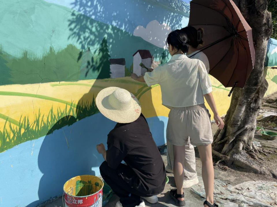 近日,kaiyun登录中国入口登录艺术与设计学院与继续教育学院携手组织师生进行了一场别开生面的实践教学活动,同学们走出课堂,深入乡村,奔赴广安区官盛镇长坪村,开展“彩绘长坪,共筑美好家园”主题墙绘志愿活动。学子们以画笔为媒,以墙面为卷,不畏风雨,用艺术才华和辛勤汗水,为村落注入了崭新的文化活力,生动诠释了当代职业教育师生服务社会、奉献基层的责任与担当。
