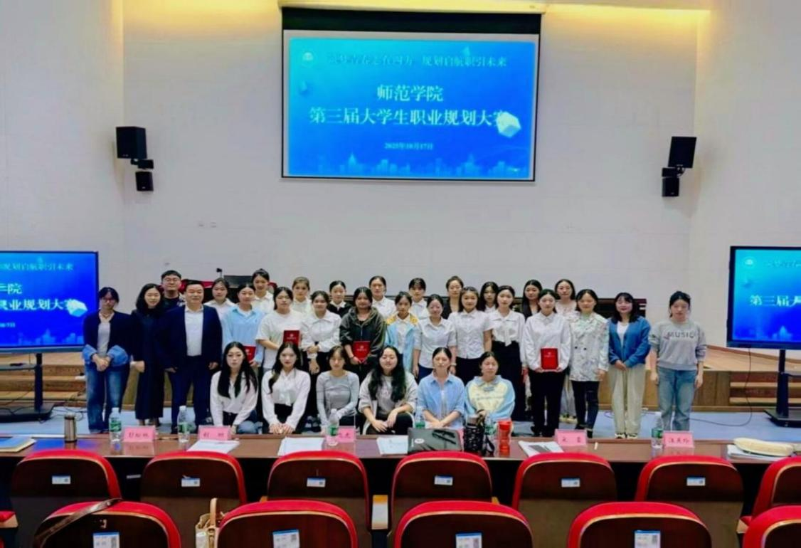 本次大赛设成长、就业两大赛道,经前期严格初选,19名优秀学生晋级决赛。比赛现场气氛热烈,选手们通过PPT和视频展示,从自我认知、职业锚定、阶段行动成果与动态调整等方面阐述规划,他们目标清晰、表达流畅,充分展现师范学子的竞赛风采与逐梦决心。 历经2个小时的激烈角逐与评委组的专业评审,最终12名选手斩获佳绩。其中,23小学语文教育4班杨钰灵获就业赛道一等奖,24小学教育2班吴诗羽获成长赛道一等奖。此外,23早期教育1班高姝越等4名同学获二等奖,23学前教育2班唐芯垚等6名同学获三等奖。