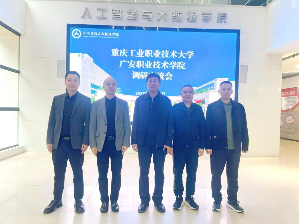 为精准推进人工智能技术应用专业内涵建设、高效对接成渝地区双城经济圈智能产业发展需求,2025年11月7日,电子与信息工程学院院长王凤领教授携专业带头人方崇全教授、胡波副教授先后赴重庆工商职业学院、重庆工业职业技术大学开展专题调研,围绕专业集群构建、产教融合模式、实训基地建设三大核心议题展开深度交流。
