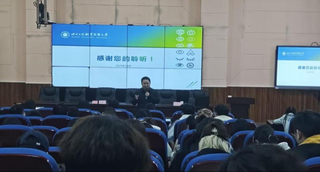 11月11日下午,艺术与设计学院在致用楼紫金厅顺利举办“解锁创作密码:用‘视觉思维’重构毕业设计”专题指导讲座。本次讲座特邀四川工程职业技术大学艺术学院副院长、教授何伟担任主讲嘉宾,学院副院长黄政主持,2026届全体毕业生及各专业指导教师齐聚现场,共同探寻毕业设计创新之道。