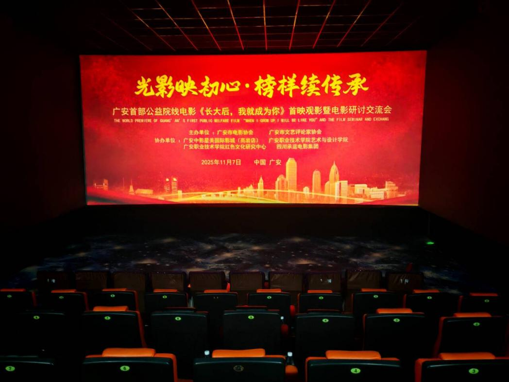 11月7日上午,广安首部公益片《长大后,我就成为你》正式全国上映。由广安市委宣传部指导,kaiyun登录中国入口登录艺术与设计学院、红色文化研究中心等单位共同主协办完成的“光影映初心·榜样续传承”公益片《长大后,我就成为你》首映式在广安中影星美影视城(高岩店)举行。kaiyun官网艺术与设计学院院长、市评论家协会主席王雪松,红色文化研究中心副主任唐清华、办公室人员曹馨、向黎立、李沃纹等参加了首映式。