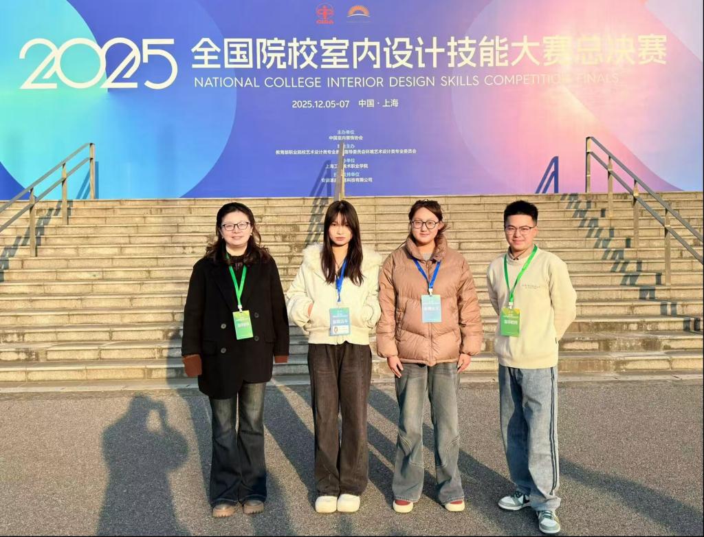 12月5日至7日,2025年全国院校室内设计技能大赛总决赛在上海工艺美术职业学院举行。本次大赛由中国室内装饰协会、教育部职业院校艺术设计类专业教学指导委员会环境艺术设计类专业委员会联合主办,汇聚了来自全国各省市的优秀代表队,其中高职组共有86支队伍同台竞技,竞争激烈。