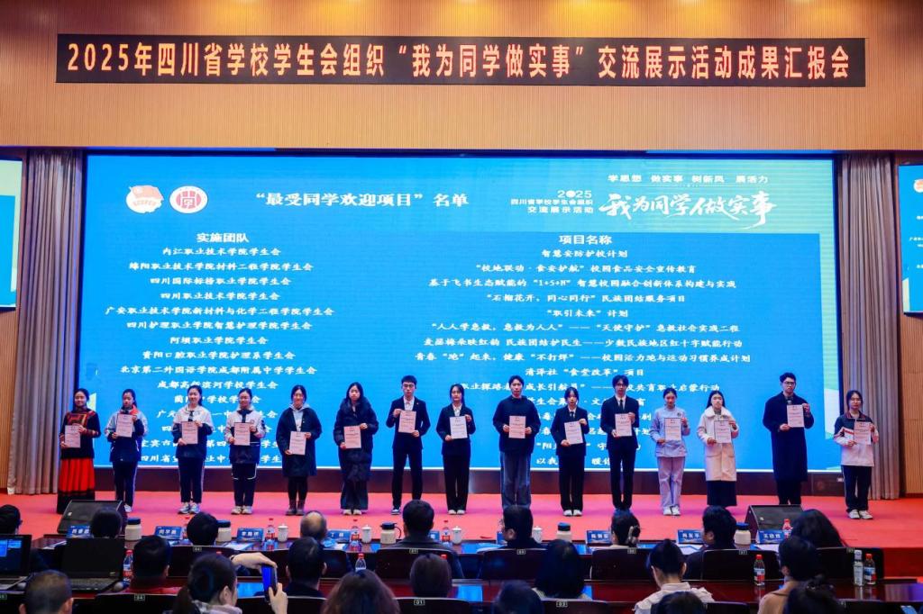12月14日至15日,由共青团四川省委、四川省学生联合会主办,西南石油大学团委、成都市学生联合会承办的2025年四川省学校学生会组织“我为同学做实事”项目交流展示活动在西南石油大学(新都校区)顺利举办。材化学院学生会牵头实施的“职引未来”计划项目获评“百佳项目”“最受同学欢迎项目”两项荣誉。