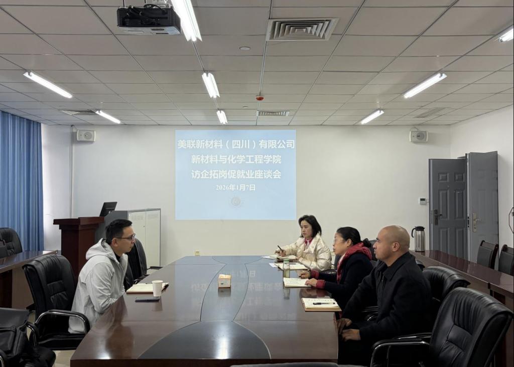 为进一步促进校企合作,1月7日,美联新材料(四川)有限公司受邀综合部经理刘超到材化学院开展学生实习就业交流活动。材化学院院长唐利平、党总支副书记吴珣、学生科科长唐梓峻等参加活动。