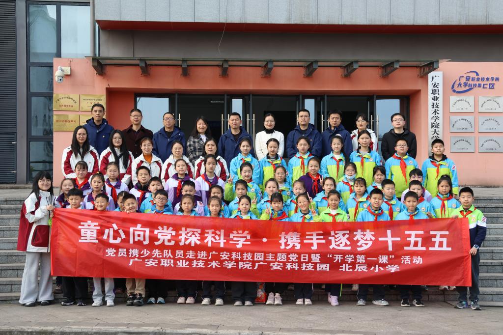 春回大地,策马扬鞭。3月4日上午,广安科技园(省级科普基地)迎来了一批特殊的客人——来自北辰小学校的全体党员教师与40名少先队员代表。他们在这里开展“童心向党探科学·携手逐梦十五五”主题党日暨“开学第一课”活动,以“大手拉小手”的形式,开启了一场科学探索之旅,让红色基因与科学精神在春日里交相辉映。