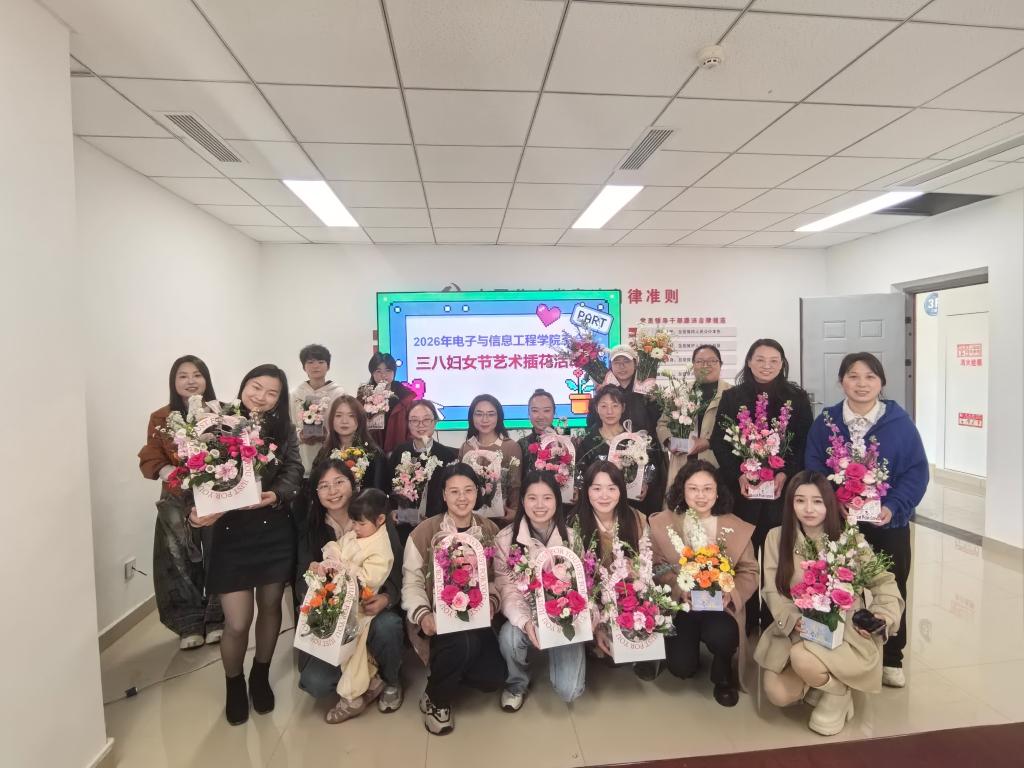 为庆祝第116个“三八”国际劳动妇女节,丰富女教职工的精神文化生活,提升艺术修养与幸福感,3月6日下午,电子与信息工程学院工会在学院办公楼301室举办了“花香悦巾帼·巧手绽芳华”主题艺术插花活动。