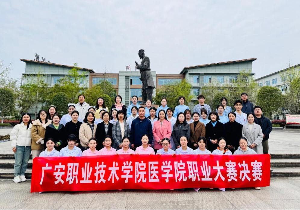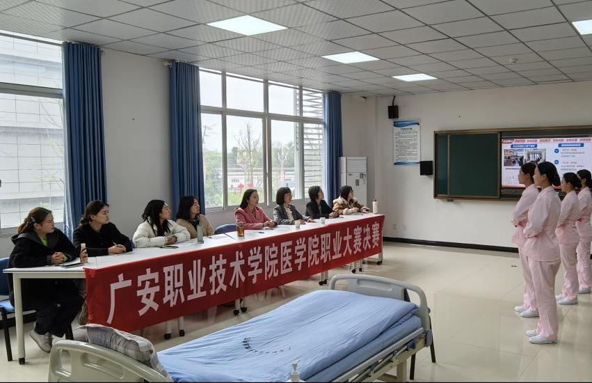 大赛突出校院协同、产教融合育人特色。决赛共有9支队伍参赛,其中6支来自校内6个专业初赛的金奖团队,3支来自广安市人民医院、广安市中医医院、广安市广安区人民医院的临床带教老师指导的优秀实习生团队。决赛现场严谨有序,选手们精神饱满、沉着应战,采用实操展示+现场讲解相结合的方式参赛,单个项目比赛时长不超过1小时。赛场上,选手操作规范娴熟、环节把控精准;讲解环节思路清晰、重点突出,充分展现了扎实的专业技能、良好的职业素养与创新实践能力,得到评审团及现场观摩师生一致认可。评审团严格参照省级大赛评分标准,从技能水平、操作规范、岗位适配、职业素养等方面综合量化打分,确保评审权威、结果公正。经过激烈比拼,最终评选出金奖1项、银奖2项及铜奖6项。