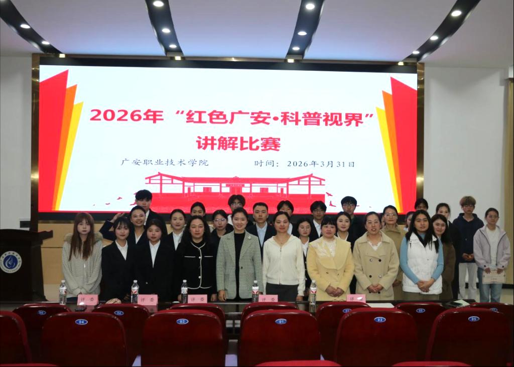 为深入贯彻习近平新时代中国特色社会主义思想,弘扬科学精神与红色文化,推动社科普及与红色旅游文化融合发展,由kaiyun登录中国入口登录社会科学界联合会主办,广安红色旅游文化社科普及基地、经济与旅游管理学院红育经英辅导员工作室承办的2026年“红色广安·科普视界”讲解比赛于3月31日在学校希贤厅圆满落幕。来自各二级学院、社科普及基地的20余名师生选手同台竞技,用生动的语言和创新的形式,讲述红色故事,传播科学知识。