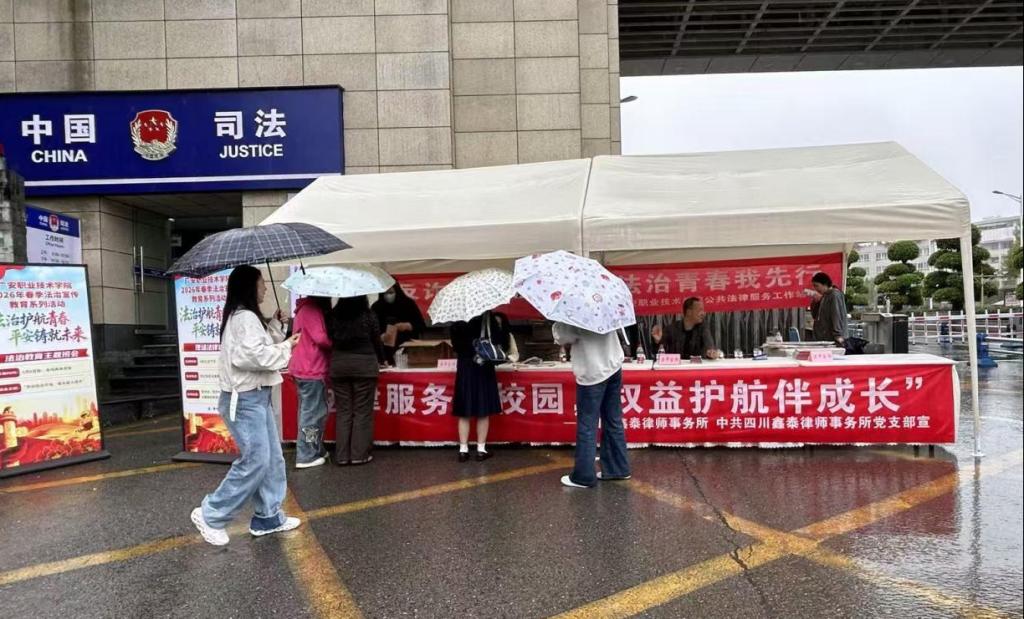同日下午,滨江校区法律援助服务中心室外同步开展了现场法律咨询服务。学校邀请四川鑫泰律师事务所执业律师设立咨询台,围绕校园贷风险防范、求职就业中的劳动法权益保护、租房合同纠纷、网络侵权与个人信息保护、校园暴力与欺凌的法律后果、消费维权等大学生高度关注的法律问题,为师生提供“一对一”免费解答。