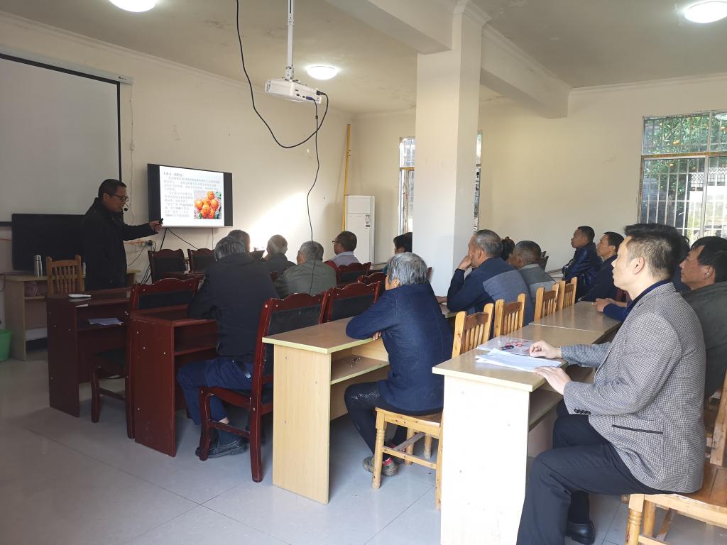 11月11日,学校选派晚熟柑橘种植技术专家邓厚明副教授赴对口帮扶的扶贫村石笋镇四岩村开展晚熟柑橘种植技术讲座。