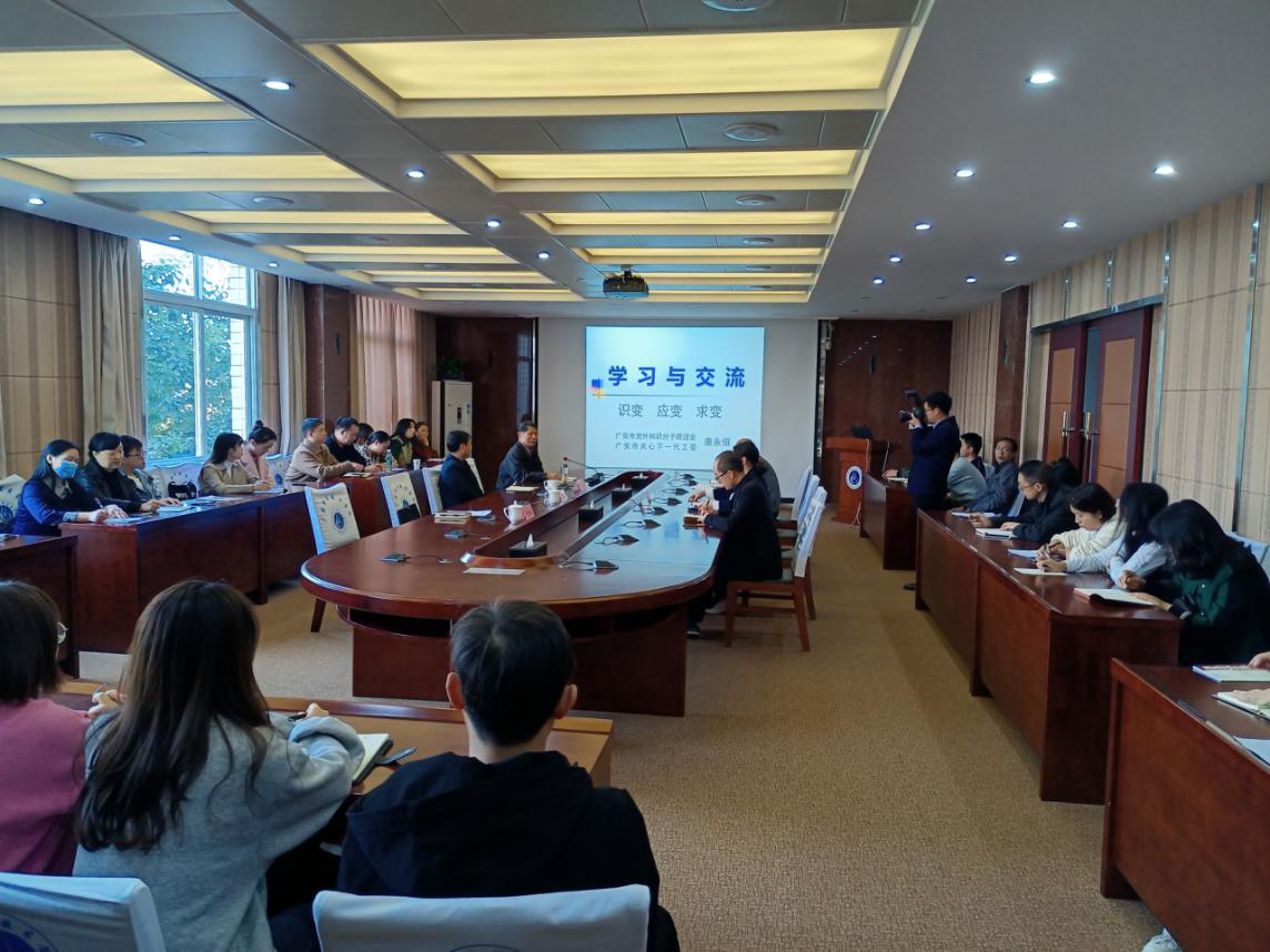 11月19日,广安市党外知识分子联谊会会长、市人大原副主席康永恒,市委统战部副部长白小兵等一行到kaiyun官网调研指导党外知识分子统战工作并举行座谈会。