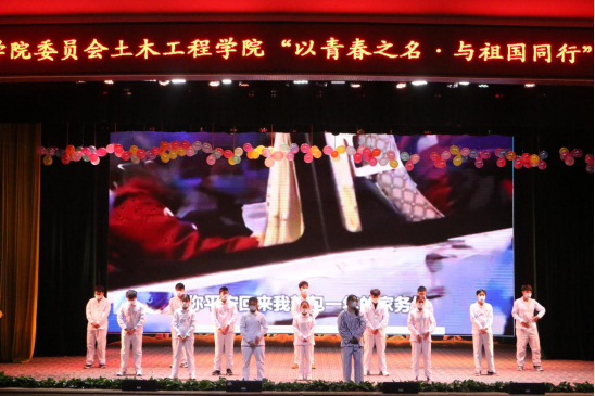 12月6日晚,土木工程学院在杏坛开展了“以青春之名·与祖国同行”第十三届团组织生活展示活动。土木工程学院管理人员及20级全体师生参加了本次晚会。