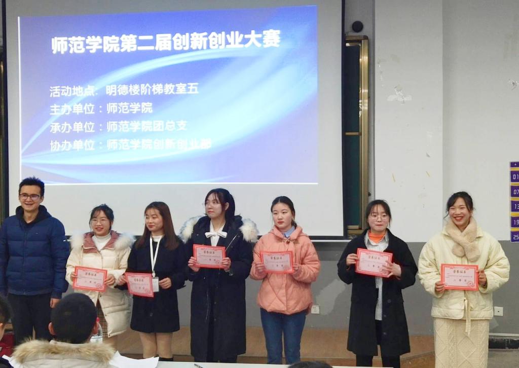 12月16日,师范学院在明德楼举办了以“创业圆梦想,创新赢未来”为主题的“互联网+”大学生创新创业大赛,师范学院副院长李勇、学生科科长李智强参加了本次比赛并为获奖团队颁奖。