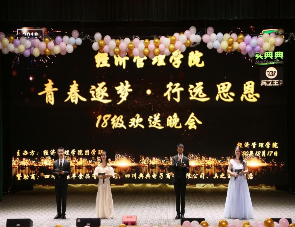12月17日晚,经管学院“青春逐梦 行远思恩”2018级毕业生欢送晚会在杏坛举行。学校党委委员、纪委书记王甫茂出席活动,相关部门负责人及经管学院全体领导、老师、团学联干部等参加本次活动。