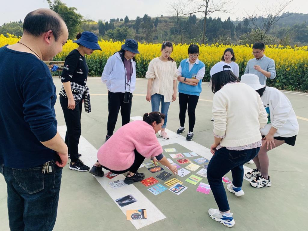 活动分为素质拓展和赏花踏青两部分。素质拓展活动中,教职工们精力充沛、欢声笑语,在拓展中心教练的指导下,参加活动的教职工们分为两小队,各自起队名、定口号、选队歌,先是两队之间开展了“一呼百应”、“齐心协力”等项目竞赛,之后两队合成一队集体头脑风暴完成“识图排序”项目。素质拓展活动结束后,教职工们自由赏花踏青,大家置身于田野间,不时的观察路上春天的景象,尽情呼吸着春天的气息,感悟着春天万紫千红、生机勃勃的美好。