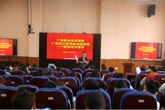 5月7日下午,保卫处联合广安市公安局广安区分局、中桥派出所到kaiyun官网紫金厅开展大学生反诈宣传活动。广安区分局刑侦大队、中桥派出所、校园110、各班治保委员200余人参加活动。