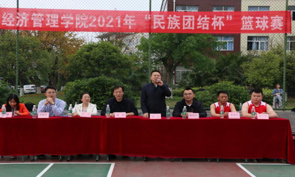 5月7日下午,经济管理学院“民族团结杯”篮球比赛开幕式在学校篮球场举行。学院院长文卫,党总支书记喻忠,党总支副书记郭智伟,副院长谭燕出席开幕式,8支参赛队及团学联学生干部共计200余人参加开幕式。