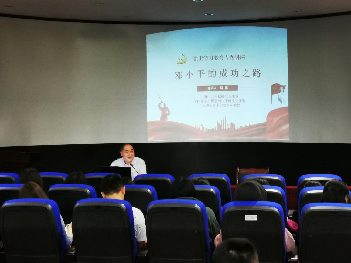 5月25日下午,学校高级顾问、客座教授、原邓小平故里管理局局长马福在九思楼3D模拟导游实训室作题为“邓小平的成功之路”的专题讲座。讲座由经管学院党总支书记喻忠主持,经管学院和电信学院师生共200多人共同聆听讲座。