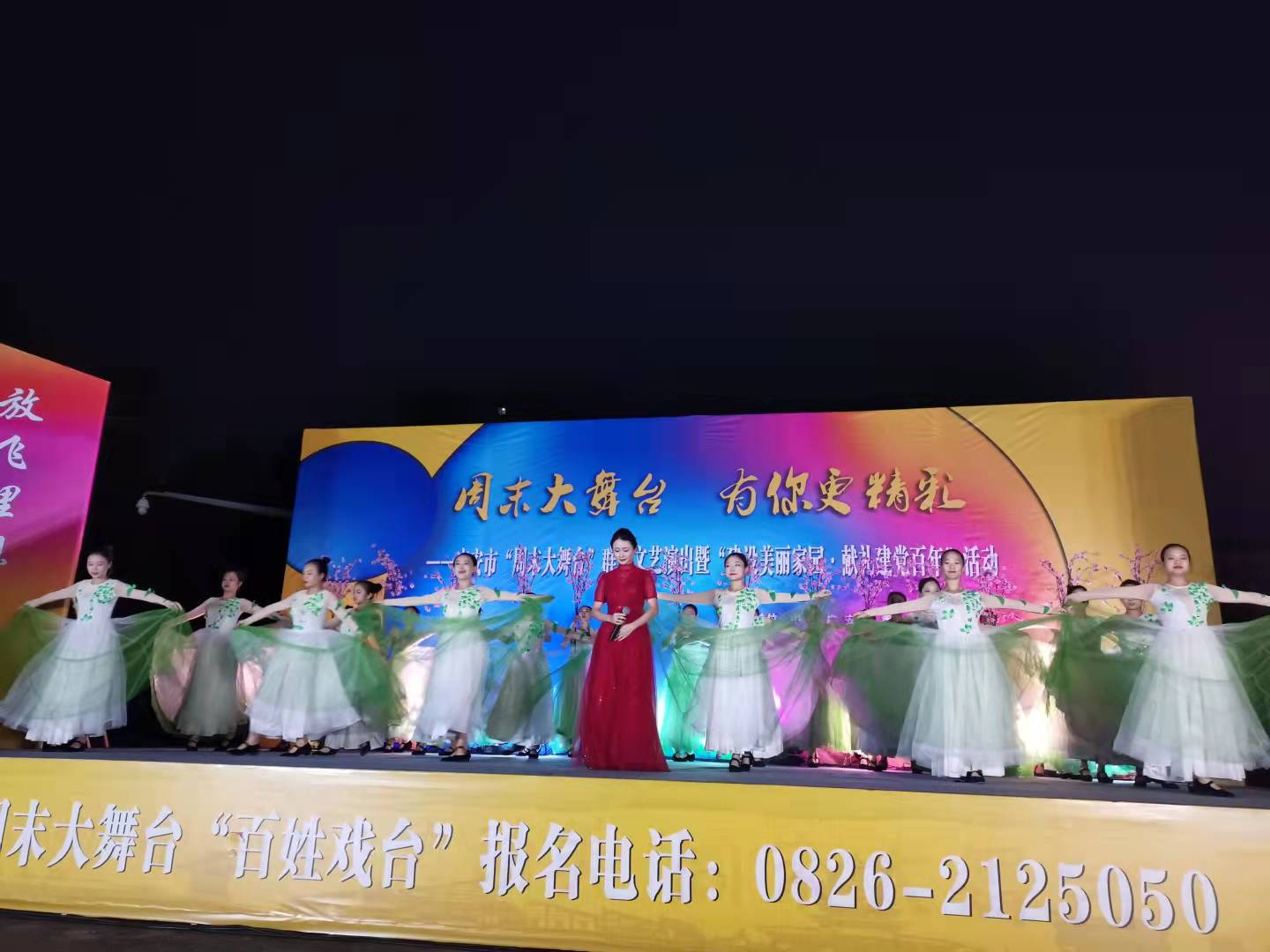 为庆祝中国共产党成立100周年,弘扬党的百年荣光,引导群众共述爱党爱国情怀,同时了为了丰富人民群众的精神文化生活,学前教育学院“桃李芬芳”师生艺术团于10月14日晚在市民广场举办以“建设美丽家园,献礼建党百年”为主题的文艺演出活动。