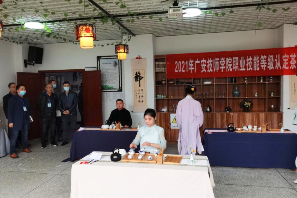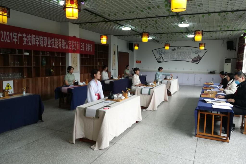 12月12日,kaiyun官网面向校内学生开展首批茶艺师(高级)职业技能等级认定考核工作,56名来自经济管理学院的大三学生参与认定。认定工作分为理论考试和实操考核两部分,理论考试在学校思源楼理论考场通过四川省职业技能等级认定监管服务平台进行,实操考核部分在九思楼茶艺师实操考场进行,从茶艺表演、识茶、评茶等方面进行技能操作考核。本次茶艺师等级认定工作结果:合格56人、不合格6人,合格率达89.3%。广安市人力资源服务中心主任谭恩建率队莅临认定现场,对本次认定考核工作开展全程督导,学院领导班子也到现场监督指导。