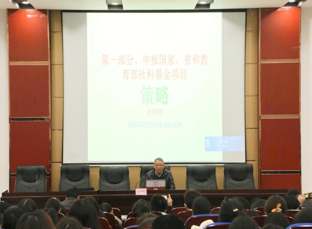 余晓钟分别从“申报国家、省和教育部社科基金项目”和“论文写作与发表”两个方面进行讲解,结合自身丰富的科研经验,从课题申报的类型、申报书的结构、内容、注意事项等几个方面进行了经验分享。同时,余晓钟还鼓励大家多参与国内外学术会议,开拓自己的眼界和视野,以助科研项目申报和论文写作。
