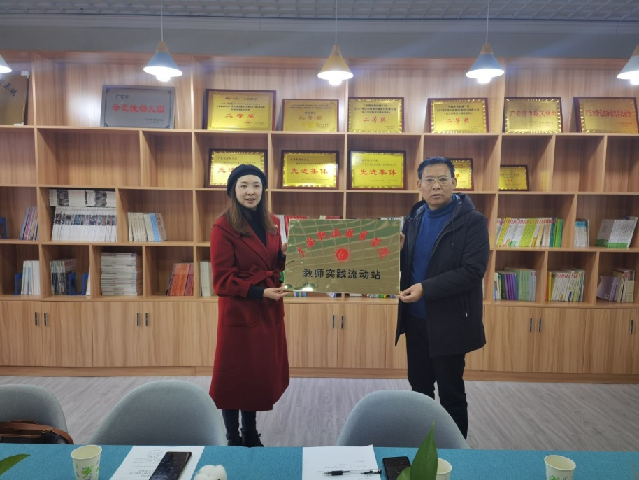 为切实加强双师型教师队伍建设,提高教师的专业素养和岗位实践能力,推进院园深度合作,12月30日上午,学前教育学院院长李义林、副院长周燕、教学科长李梅、学前教育教研室主任陈香帆一行前往广安实验幼儿园,与园方举行教师顶岗挂职座谈和“教师实践流动站”授牌。