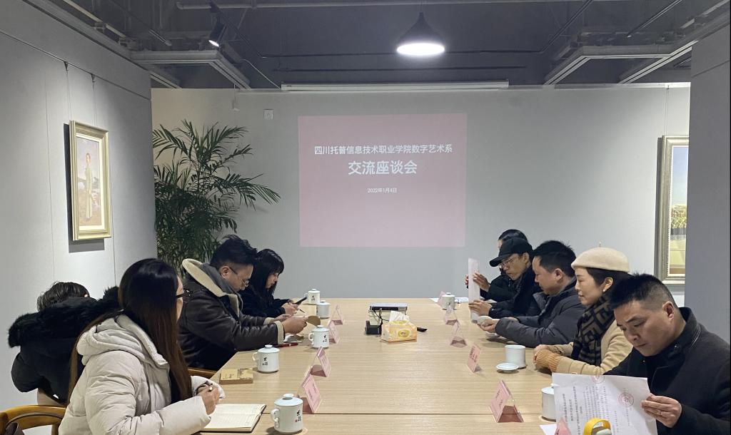 艺术学院副院长黄政、党总支副书记杨小乐以及美术教育、广告艺术设计、动漫制作技术专业教研室主任和部分专业教师陪同参观并参加了座谈。