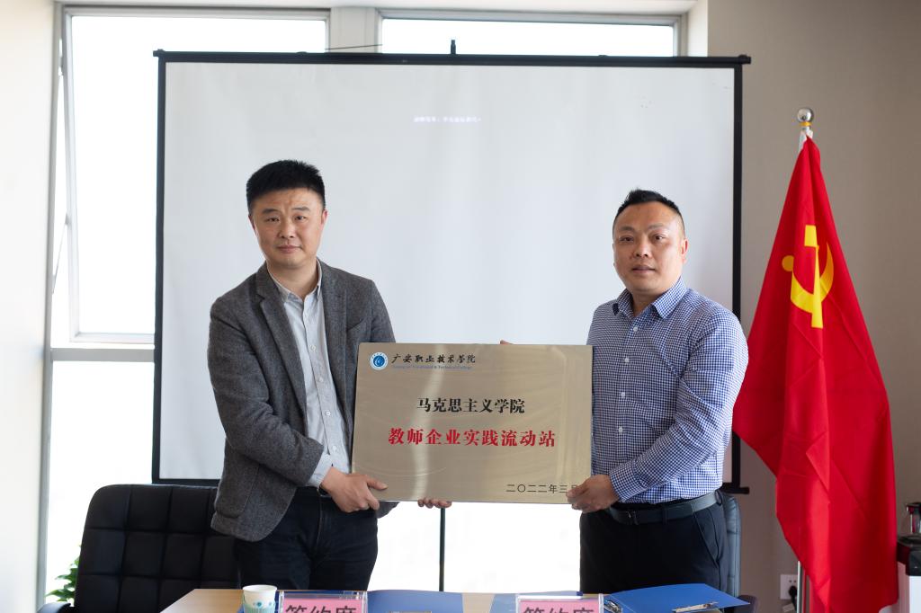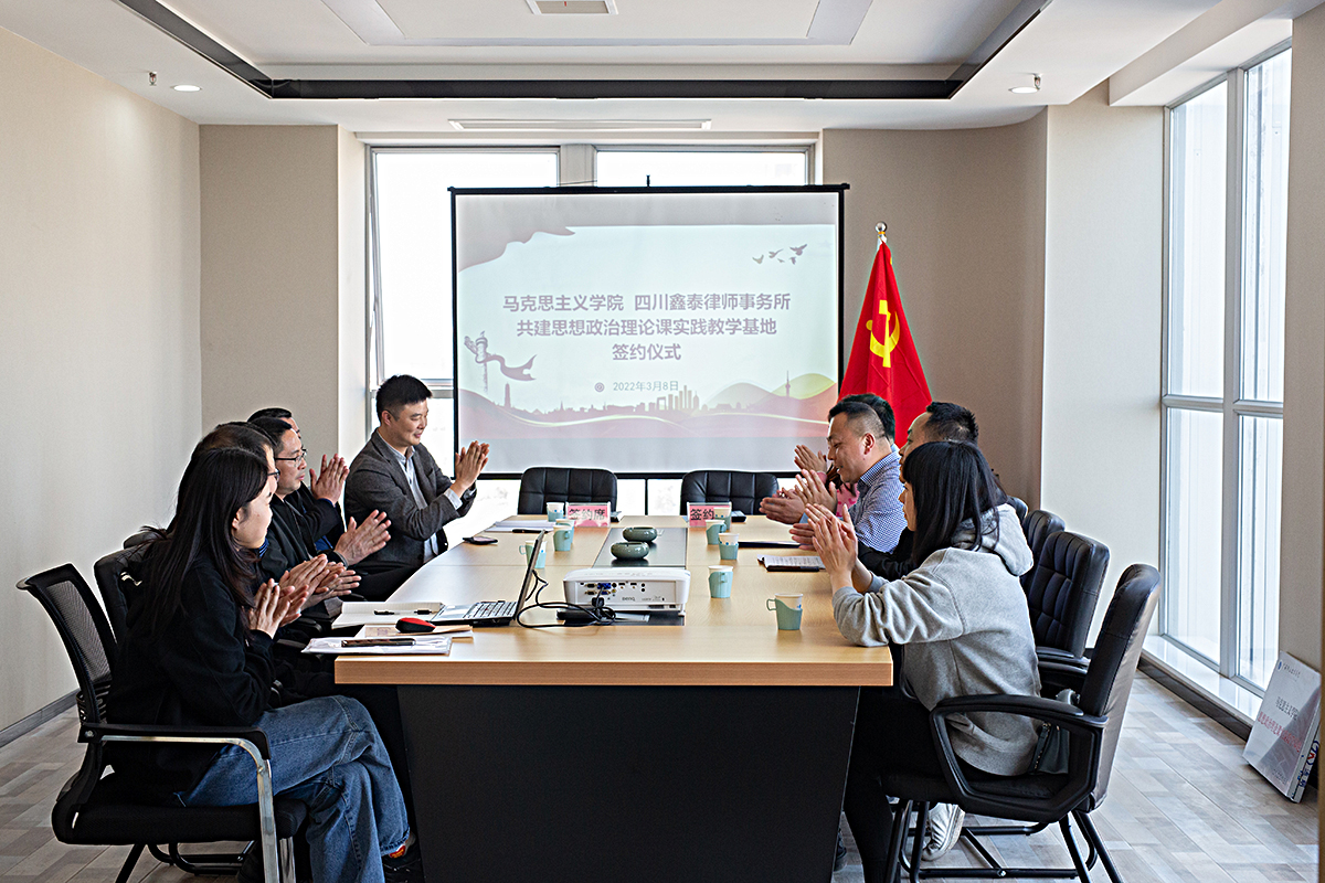 为充分发挥地方企业行业文化优势和社会教育职能,增进校企合作与互动,发掘和形成教育合力,整合优质社会资源,推动思政课改革发展,努力培养更多适应地方经济建设和社会发展的高素质应用型人才,3月8日下午,马克思主义学院与四川鑫泰律师事务所在经开区互联网小镇举行了“教师企业实践流动站”和“大学生思想政治理论课实践教学基地”建设签约授牌仪式,院长石乾福、副院长牛振宇,教研室主任、法治课教师代表以及四川鑫泰律师事务所主任钟杨和部分律师代表参加了仪式。