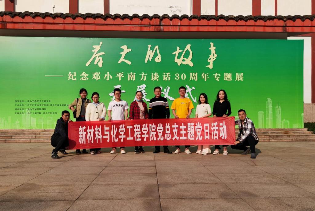 为深入学习贯彻习近平新时代中国特色社会主义思想和党的十九届六中全会精神,进一步巩固党史学习教育成果。3月8日下午,新材料与化学工程学院党总支组织全体党员同志赴小平故居开展“党建引领树先锋 砥砺前行建新功”主题党日活动。