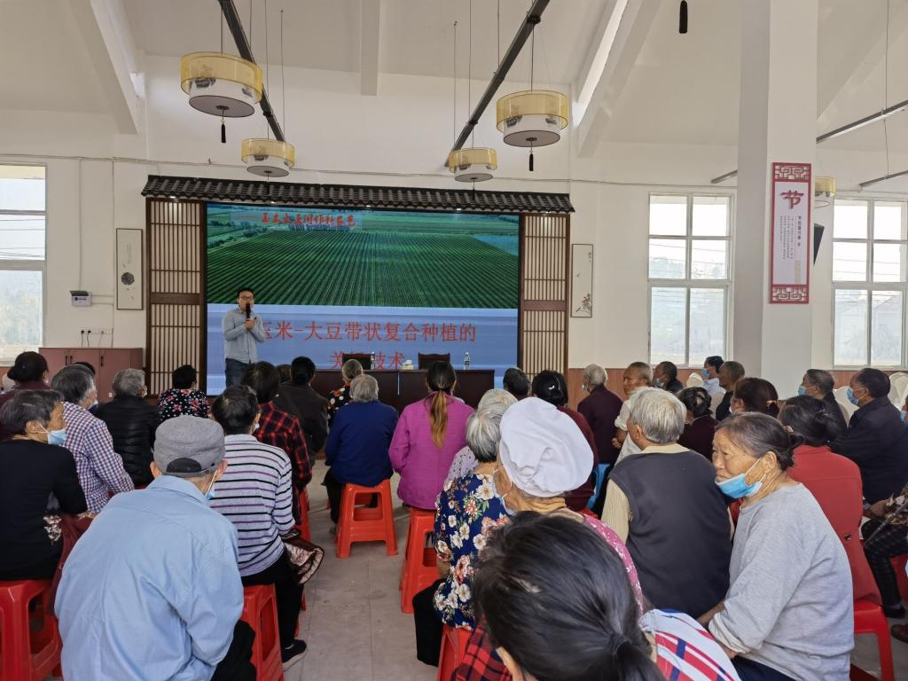 广安科技园专业人员紧密响应2022年中央一号文件“大力实施大豆和油料产能提升工程”的要求,积极推广大豆玉米带状复合种植模式。通过通俗易懂的讲解、知识手册的发放、亲身现场示范,帮助农民朋友了解玉米大豆带状复合种植的主要优势和关键技术。