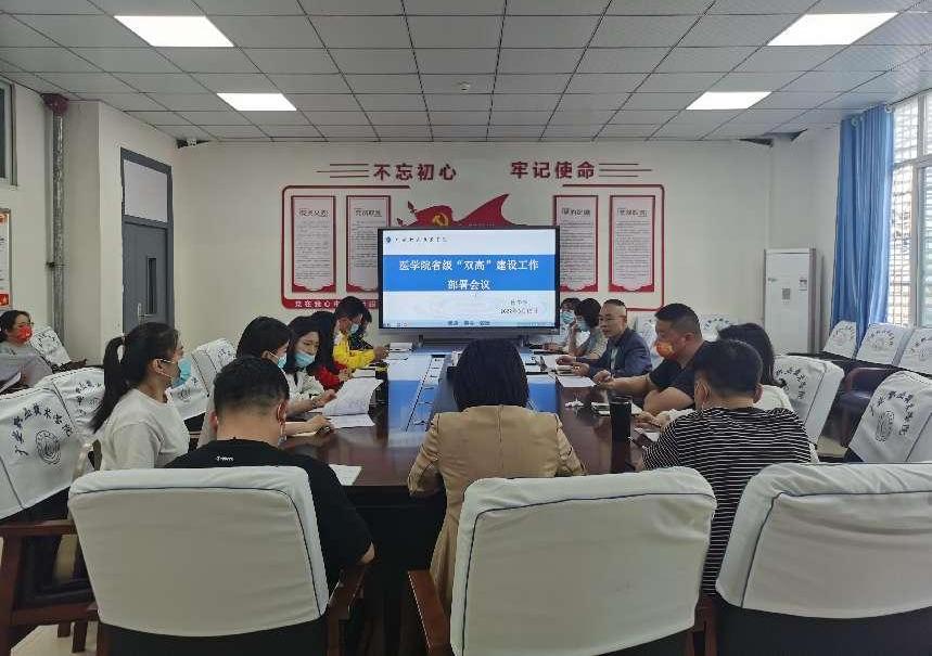 3月15日下午,医学院在明辉楼A118室召开“双高”建设工作部署会议,医学院领导班子、教学科研部、各项目负责人及相关人员参加会议,会议由医学院院长罗刚主持。