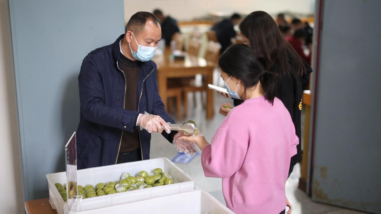 午餐前,后勤管理处将清明美食活动文案发至学校群里宣传推广,午餐结合清明吃寒食的特点,特意准备了凉拌牛肉和凉拌三鲜这两道凉菜。结合四川人喜麻喜辣的特点,配上低脂营养的洋葱、胡萝卜等素菜,整个菜肴麻辣相间、鲜香爽口。饭后甜点特意准备了青团这一清明前后才能吃上的春季特有小吃,肉松、麻薯等4种口味的馅料。食堂里欢声笑语,热闹非凡,教职工们纷纷点赞。