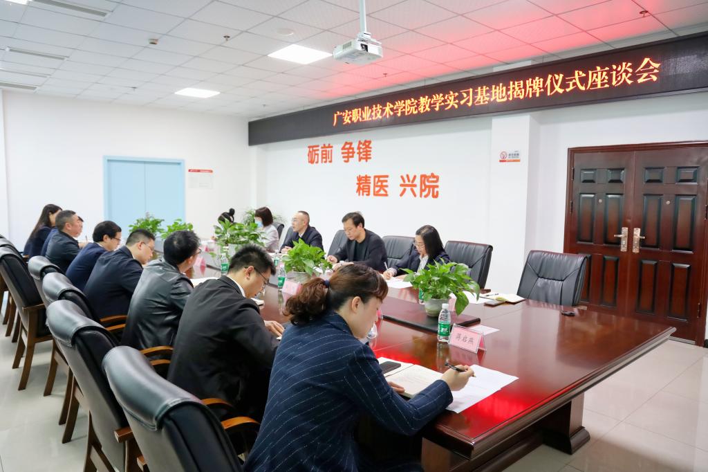 揭牌仪式前,双方召开了座谈会。罗刚对前锋区人民医院的大力支持表示衷心感谢,同时对医学院办学模式、师资力量、专业建设、人才培养模式等方面做了详细的介绍。他希望通过本次合作,校院双方共同培养高水平的医务人员,实现校院深度合作,产教融合。