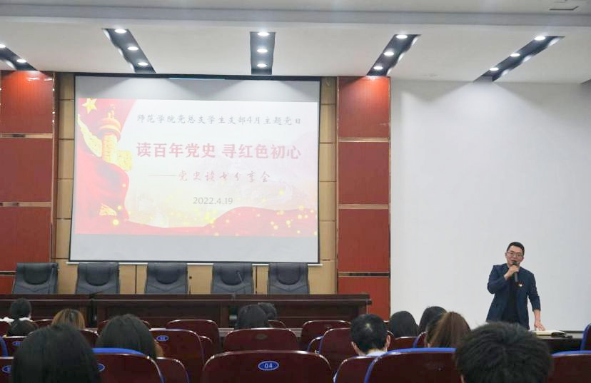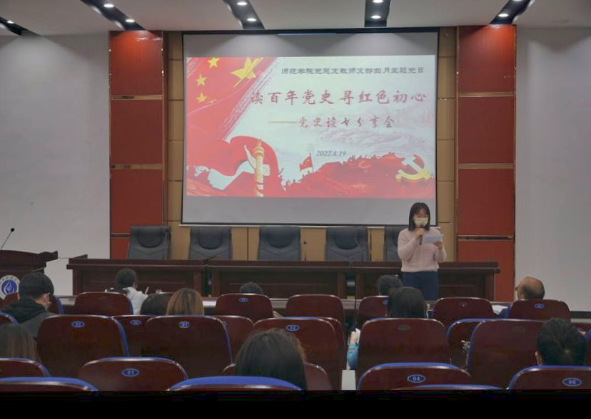 为迎接世界读书日的到来,师范学院党总支4月19日在明德楼先圣厅开展了“读百年党史 寻红色初心”党史阅读分享会党日活动。师范学院党员教师及学生预备党员参加了此次活动。