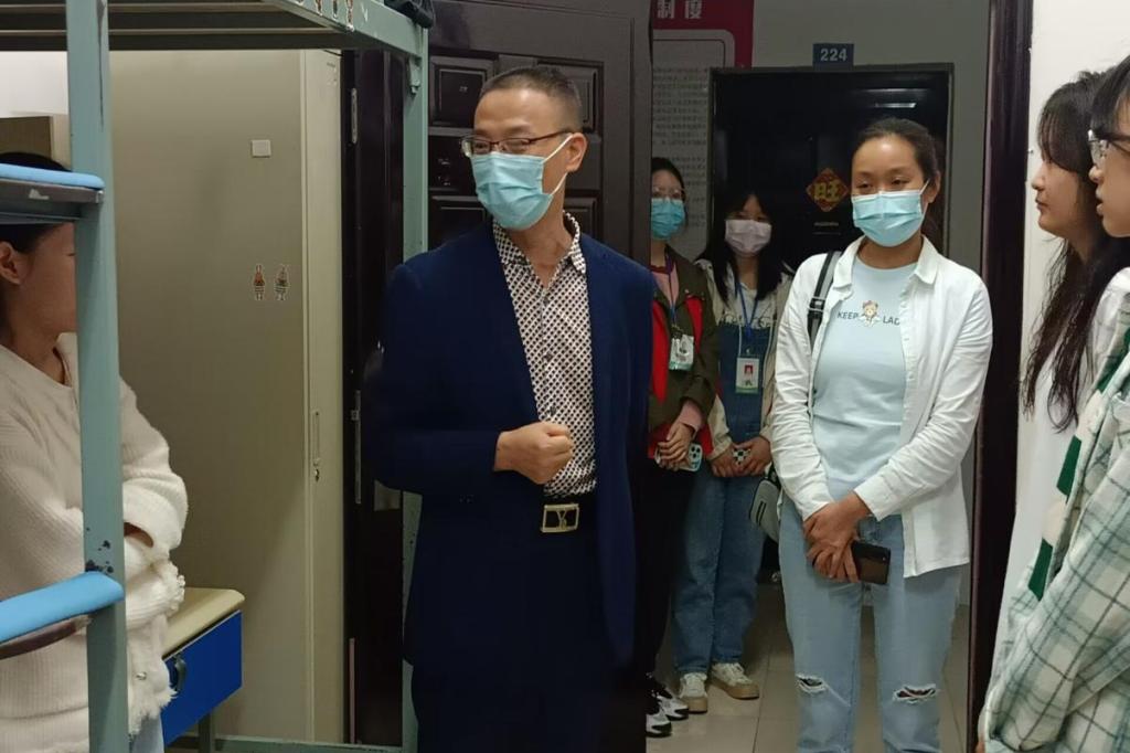 新生入校后,为更好地了解新生在疫情防控下的学习生活情况,引导新生尽快适应新环境,积极融入大学校园生活,10月12日晚,师范学院吴全生院长和值班老师走访了新生入住的宿舍,为大一新生送去了问候和关怀。