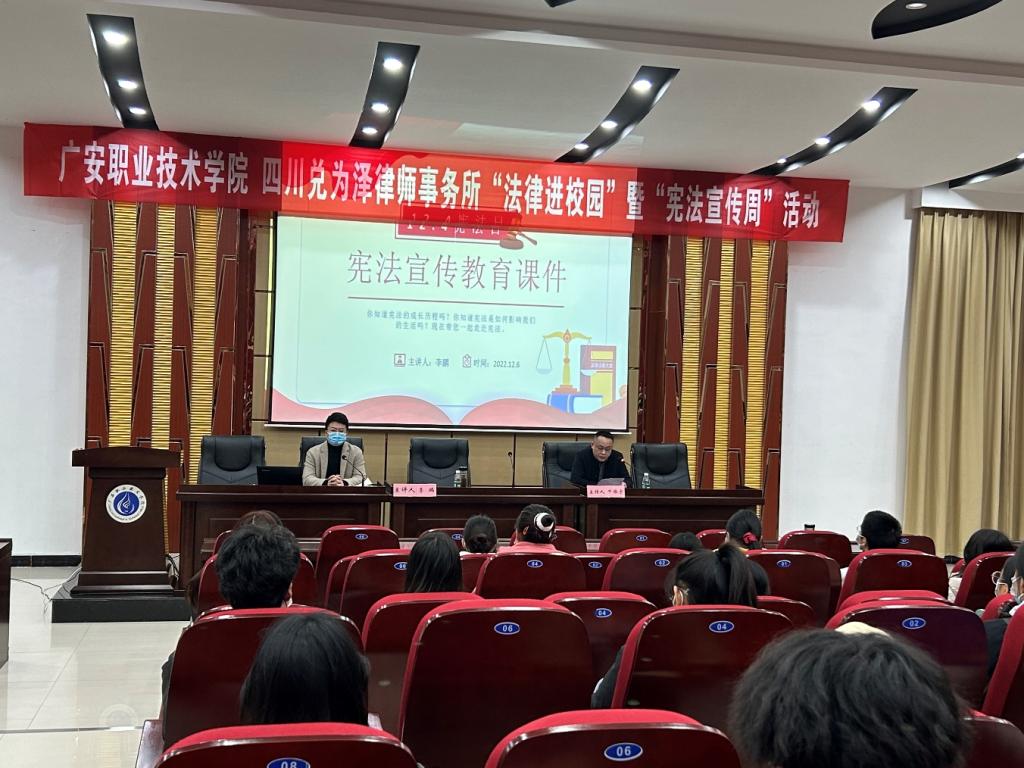 今年12月4日是第九个国家宪法宣传日,11月28日—12月4日是第五个“宪法宣传周”。为了进一步增强kaiyun官网学生的法治观念,提升法律素养,营造浓厚的校园法治文化氛围,12月6日下午,四川兑为泽律师事务所专职律师李鹏应邀为学校师生作了题为“宪法基础知识宣讲”的法治专题讲座。马克思主义学院副院长牛振宇主持了本次讲座。