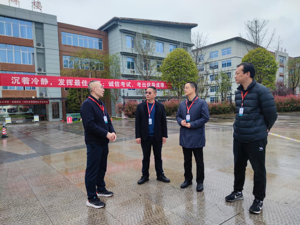 为确保单招工作顺利进行,医学院高度重视,在学校党委行政领导下和招生就业处指导下,多次召开单招考试工作推进会,科学制定医学院2023年单招考试工作方案,积极协调广安经开区教育、公安、交警、爱众等部门,保障医学院2023年单招考试顺利举行。学校党委副书记陈鹏,党委委员、副校长袁祖洪,党委委员、副校长袁驰,华泰集团副总经理章斌及相关部门分别到场指导检查单招考试工作,并提出要求,要统筹做好考试组考、保考和应急处置,确保单招考试各项工作到位,不出一丝纰漏。
