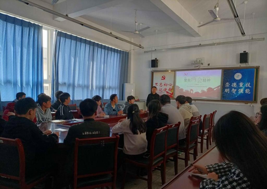 为认真学习贯彻2023年全国两会精神,提高智能制造与汽车工程学院学生预备党员、入党积极分子政治修养。3月30日,智能学院学生支部在致用楼408召开了“聚焦两会精神”的主体党课,本次党课由党总支组织员李沁逸授课,支部学生预备党员、入党积极分子参与了党课学习。