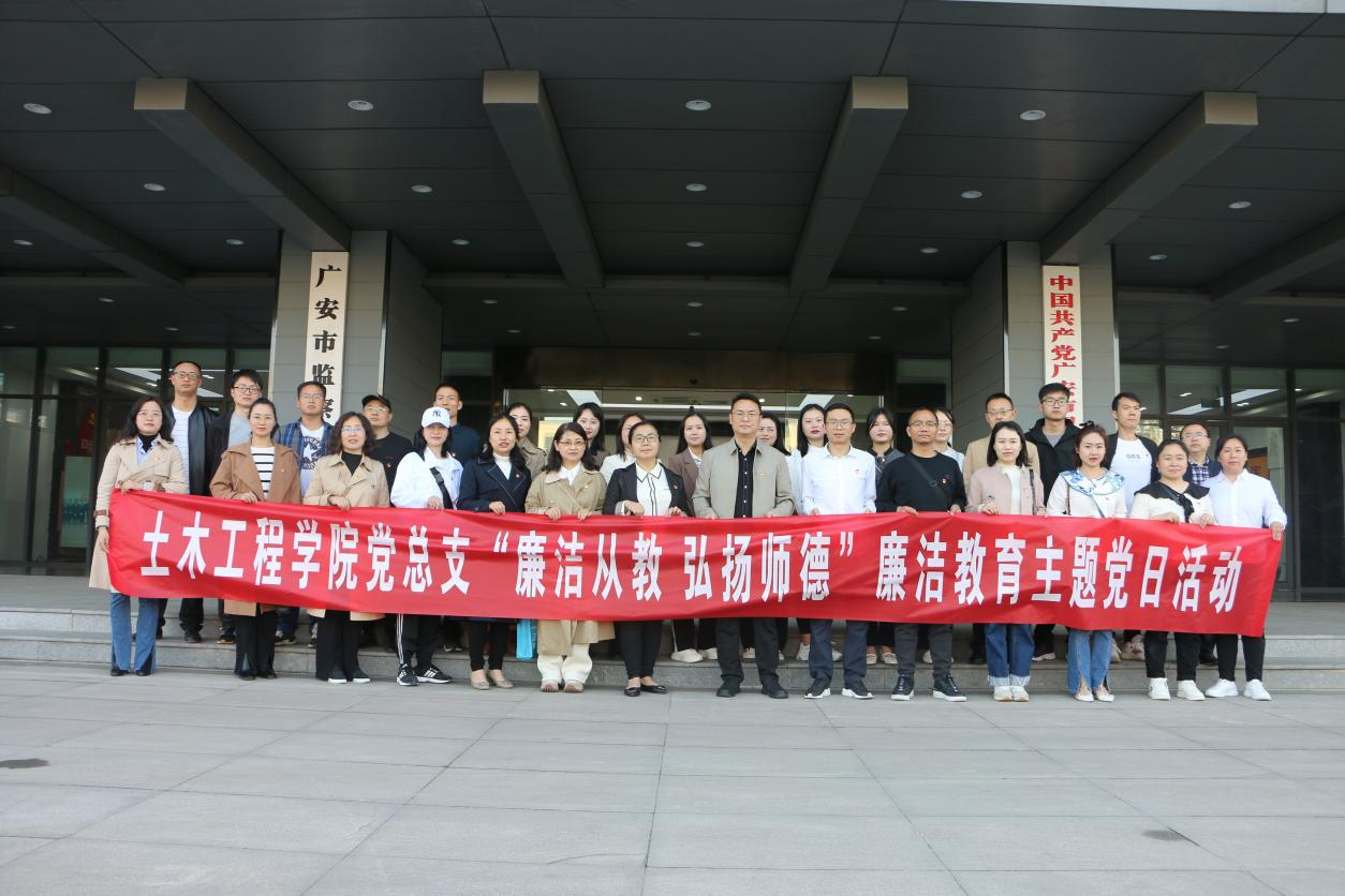 4月4日下午,土木工程学院组织全体教职工赴广安市党风廉政教育基地开展“廉洁从教 弘扬师德”警示教育活动。