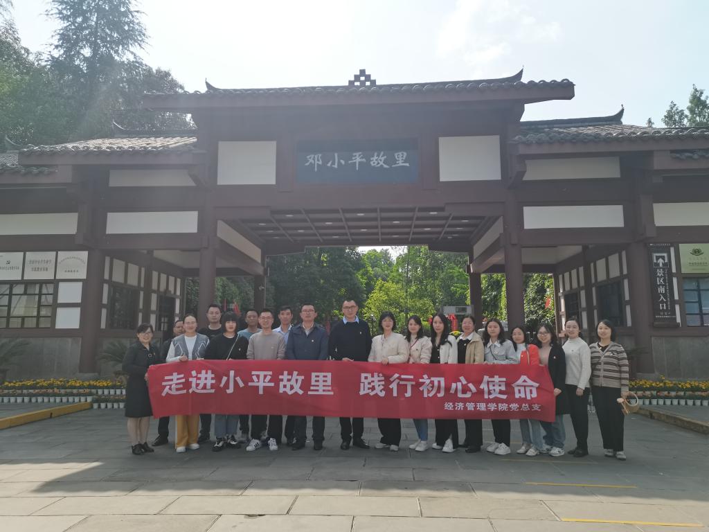 为深入贯彻落实党的二十大精神,深刻感悟共产党人的初心,让红色基因融入血脉,让红色精神激发力量,不断学习小平同志高瞻远瞩,改革创新的政治勇气。4月25日下午,经济管理学院党总支组织全体党员前往小平故里开展“走进小平故里践行初心使命”的主题教育实践活动。