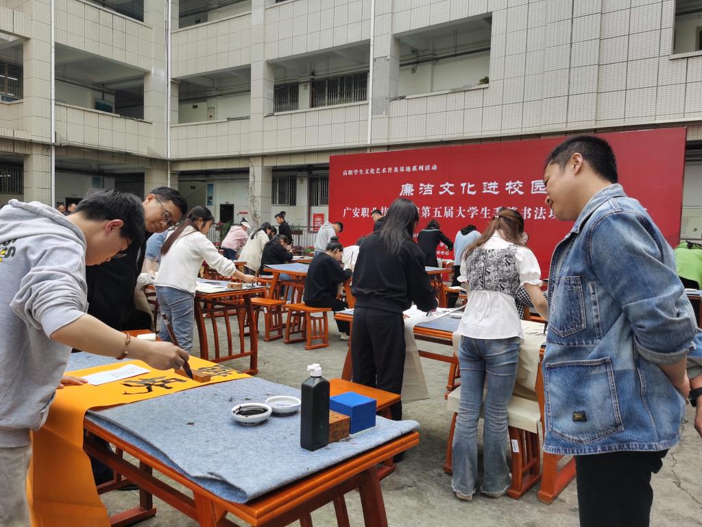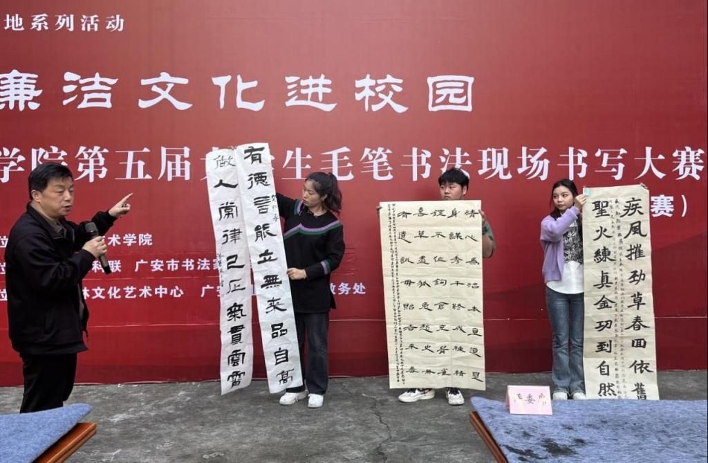 本次活动也是广安市社科普及基地“高职学生文化艺术普及基地”系列活动之一,得到了广安市社科联的大力支持和广安市书法家协会、宕渠书画院的倾力指导。市社科联相关领导,学校相关部门及各二级学院领导和部分教师到场观摩了本次活动。