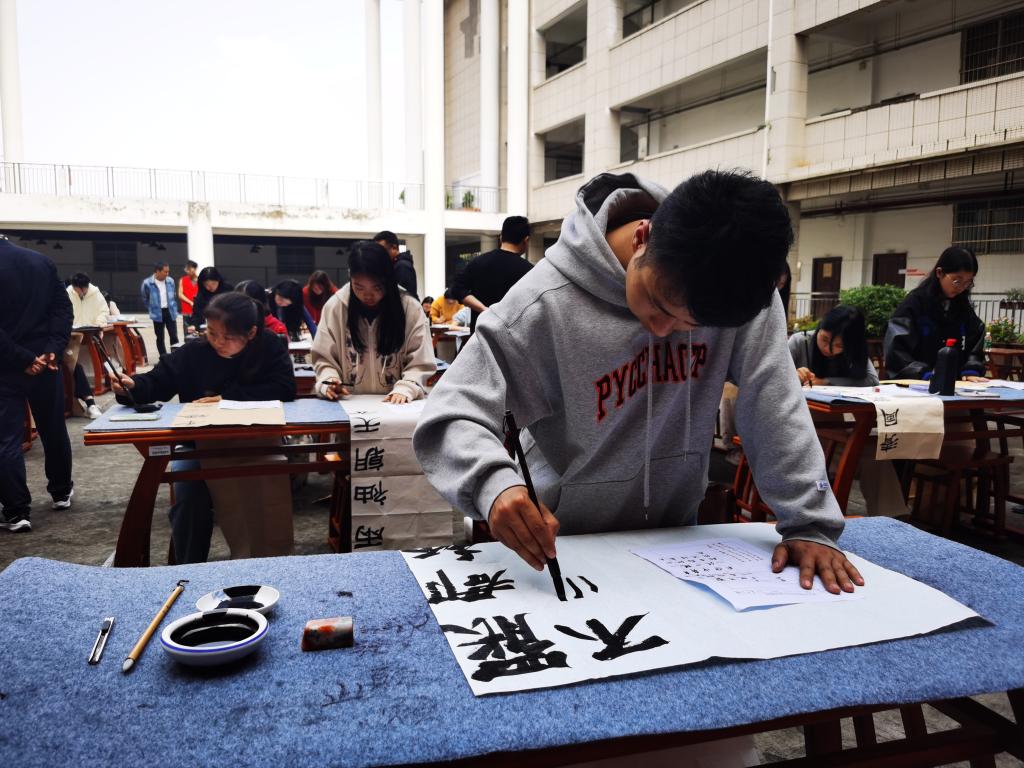 学校至今已连续举办五届书法现场书写大赛,既是学校近年来书法教育成果的集中展示,也是校园文化建设的亮点呈现。作为高职院校书法课程“四育四好”教学改革的一次生动实践,通过将规矩、内修、审美、养性、怡情融合书法教育过程,引导培养学生“识好”、“写好”、“品好”中国字,“做好”中国人,实现明德、益智、健体、尚美的教育目标,推进书法教育创新发展,让优秀传统文化具有长久的生命力。