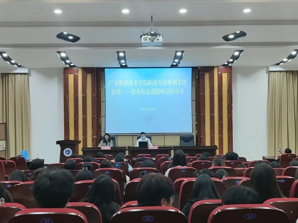 5月10日下午,2014届建筑工程技术专业毕业生——优秀校友、广安非凡市场调查有限公司执行董事蒲晓林受邀在学校希贤厅做职业生涯规划主题讲座,土木工程学院、师范学院、学前教育学院学生代表聆听讲座。