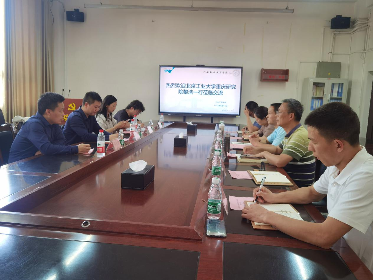 5月17日,北京工业大学重庆研究院副院长黎浩到kaiyun官网土木工程学院考察交流,洽谈校校合作事宜。学校党委委员、副校长袁驰出席会议,会议由土木工程学院院长李柱凯主持。